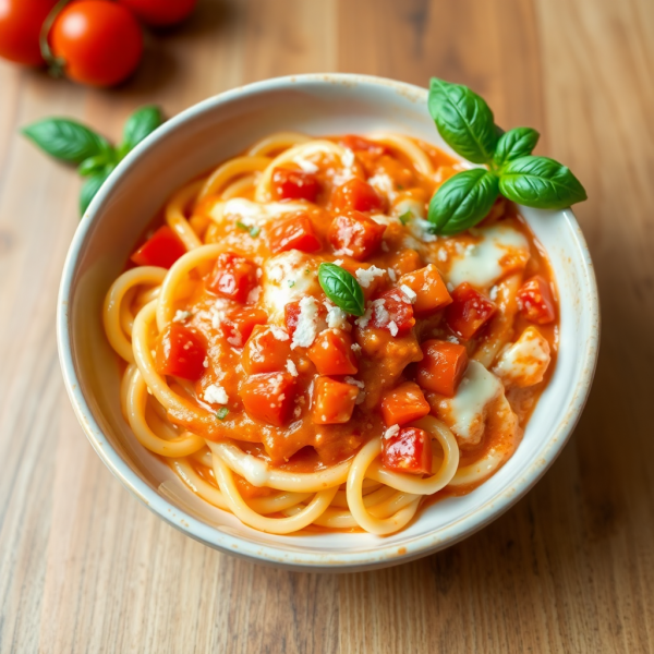 100g Pasta 1 tbsp Butter 1/2 Onion, finely chopped 1 medium Tomato, diced 50g Cheese (preferably mozzarella or cheddar) Salt and pepper to taste Fresh basil for garnish (optional)